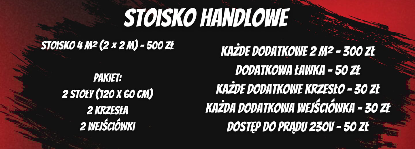 Zapraszamy sprzedawców gier, książek, odzieży, biżuterii oraz innych artykułów tematycznych, a także firmy chcące zaprezentować swoje produkty i usługi.